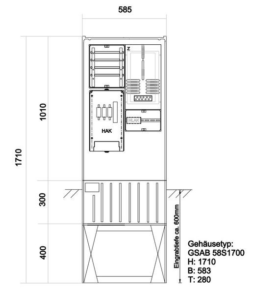 | Kurzbeschreibung | Zähleranschlusssäule Energienetz Mitte (1Zähler ohne TSG) mit Ausbaumöglichkeit |