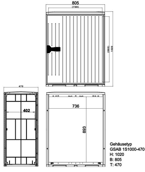 | Kurzbeschreibung | Normkabelverteilerschrank Gr.1 ohne Sockel HxBxT:1020x805x470 Montagepl. Powder In-Mould Coating |