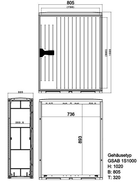 | Kurzbeschreibung | Normkabelverteilerschrank Gr.1 ohne Sockel HxBxT:1000x805x320 Montagepl. Doppelschwenkhebel, In-Mould Coating |