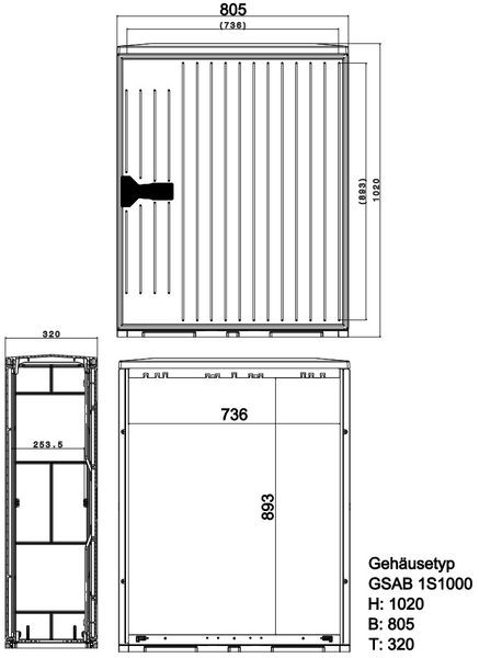 | Kurzbeschreibung | Normkabelverteilerschrank Gr.1 ohne Sockel HxBxT:1000x805x320, Montageplatte, Powder In-Mould Coating |