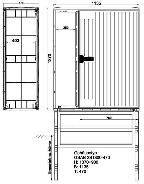 | Kurzbeschreibung | Verteilerschrank HxBxT:1300x1135x470 1/3-und 2/3-Tür Einfachschwenkhebel |