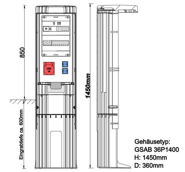 | Kurzbeschreibung | GSAB-Poller rund mit Sockel, Ges.-Höhe 1411mm, Durchm. 360mm, CEE16, 2 Schuko |