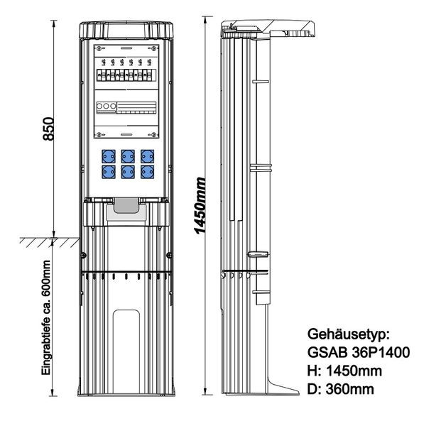 | Kurzbeschreibung | GSAB-Poller rund m. Sockel, Ges.-Höhe 1411mm, Durchm. 360mm, 6xSchuko |