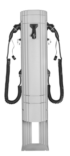 Ladesäule rund, glasfaserverstärkt. Polyester mit Sockel, 22kW, Schlüsselschalter, angeschlag. Typ2-Spiralkabel 6mm²