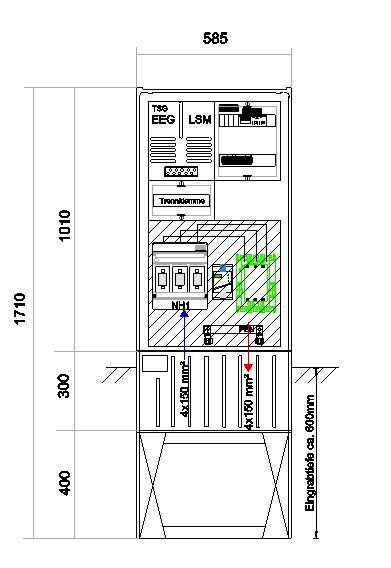 | Kurzbeschreibung | NA Schutz Anschlußsäule H:B:T:1710:580:280mm Doppelschließung bis 90kW 3pol.Variante TN-C-Netz |