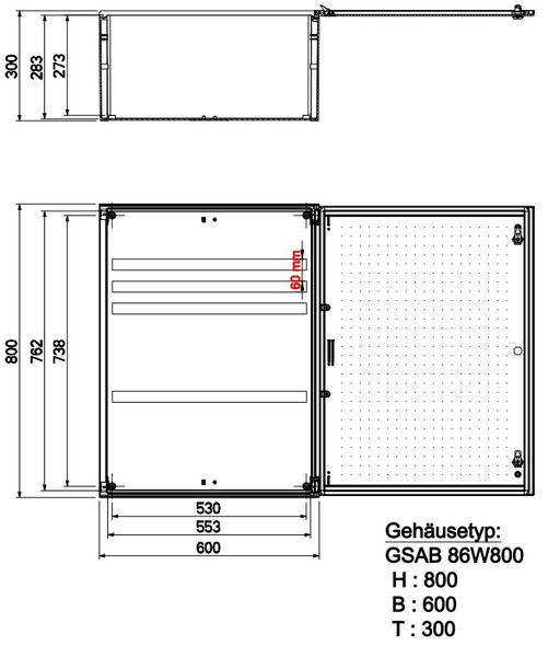 | Kurzbeschreibung | GfK-Wandschränke IP65 H800xB600xT300 Doppelbartverschluß mit Sammelschienensystem 60mm |