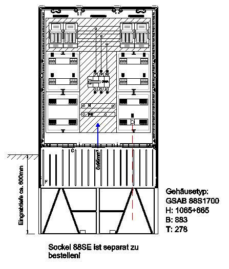 | Kurzbeschreibung | Verteilersäule für Emobility H:1065 x B:883 x T:278mm für 8x11KW Abgänge ohne Monpla |