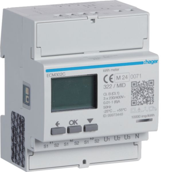 Energiezähler 3phasig für Wandlerverhältnis 1A oder 5A, 4M, MBUS, MID