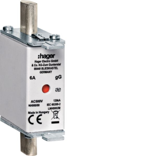 | Kurzbeschreibung | NH-Sicherung NH000 gG 500V 6A K-Melder |