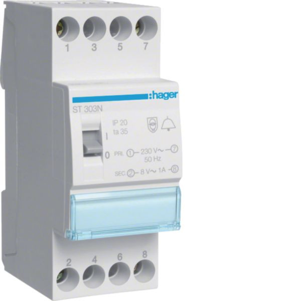 HAGER ST303 Klingeltrafo 230V/8+12V 8VA 2PLE