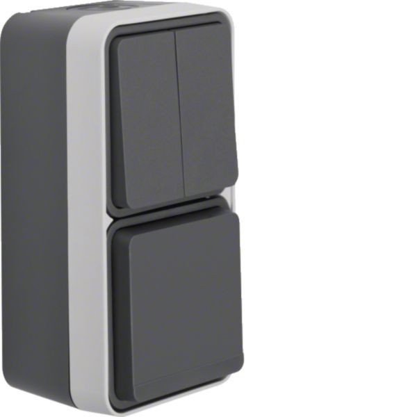 | Kurzbeschreibung | Kombination Serienschalter/Steckdose SCHUKO mit Klappdeckel AP W.1 grau 10A/250V |