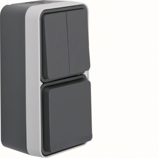 Serienschalter/Steckdose SCHUKO Klappd. erh. B.schutz, AP senk., W.1 IP55, grau