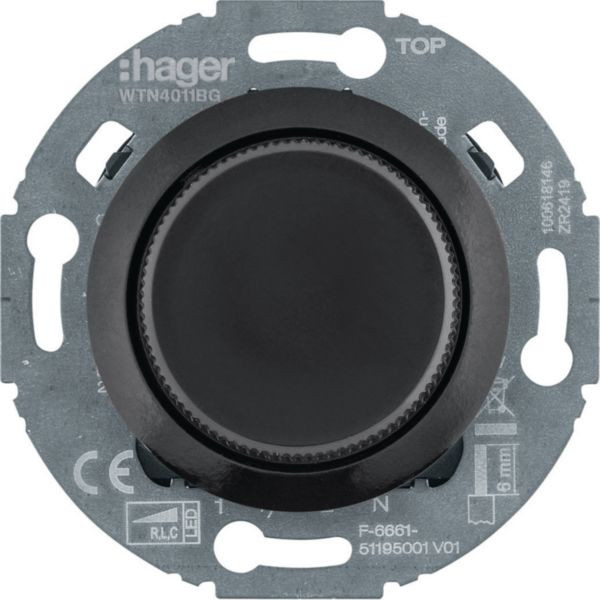 | Kurzbeschreibung | Universal-Drehdimmer mit Zentralstück (R, L, C, LED), Serie 1930/Glas, schw. gl. |