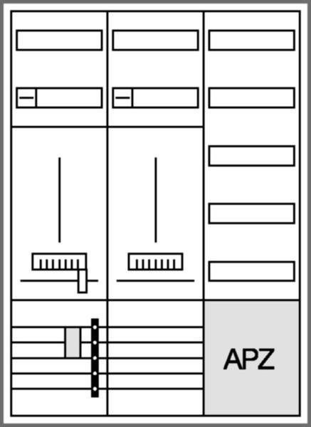 | Kurzbeschreibung | Komplettschrank, univ.Z, 1100x800x205mm, SKII, IP44, 2ZP/VF-5rh/APZ, 3-feld, NRM |