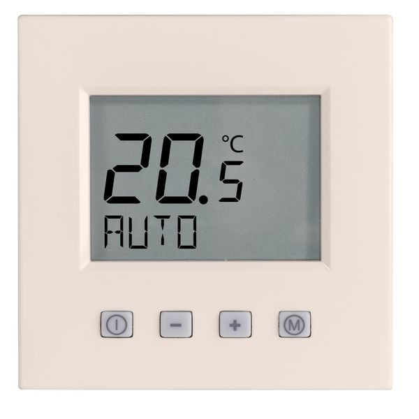 Fußbodenheizungsregler u.P. Komfort, zur Regelung der Fußbodentemperatur unabhängig der Raumtemperatur, mit Zeitschaltuhr, großes, beleuchtetes Display, einschl. Zentralscheibe, ohne Abdeckrahmen, einfache Bedienung, Ist- und Solltemperaturanzeige, 10(4)A, 230V, einschl. Fühler (NTC, 33kOhm bei 25°C) mit 4,00 m Leitung, ohne Fühlerhülse, Umstellmöglichkeit auf Heizen/Kühlen-Funktion und auf Schließerkontakt, selbstlernendes Regelverhalten, Farbe: cremeweiß glänzend, ähnlich RAL1013, passend in folgende Schalterprogramme: Jung Serie LS