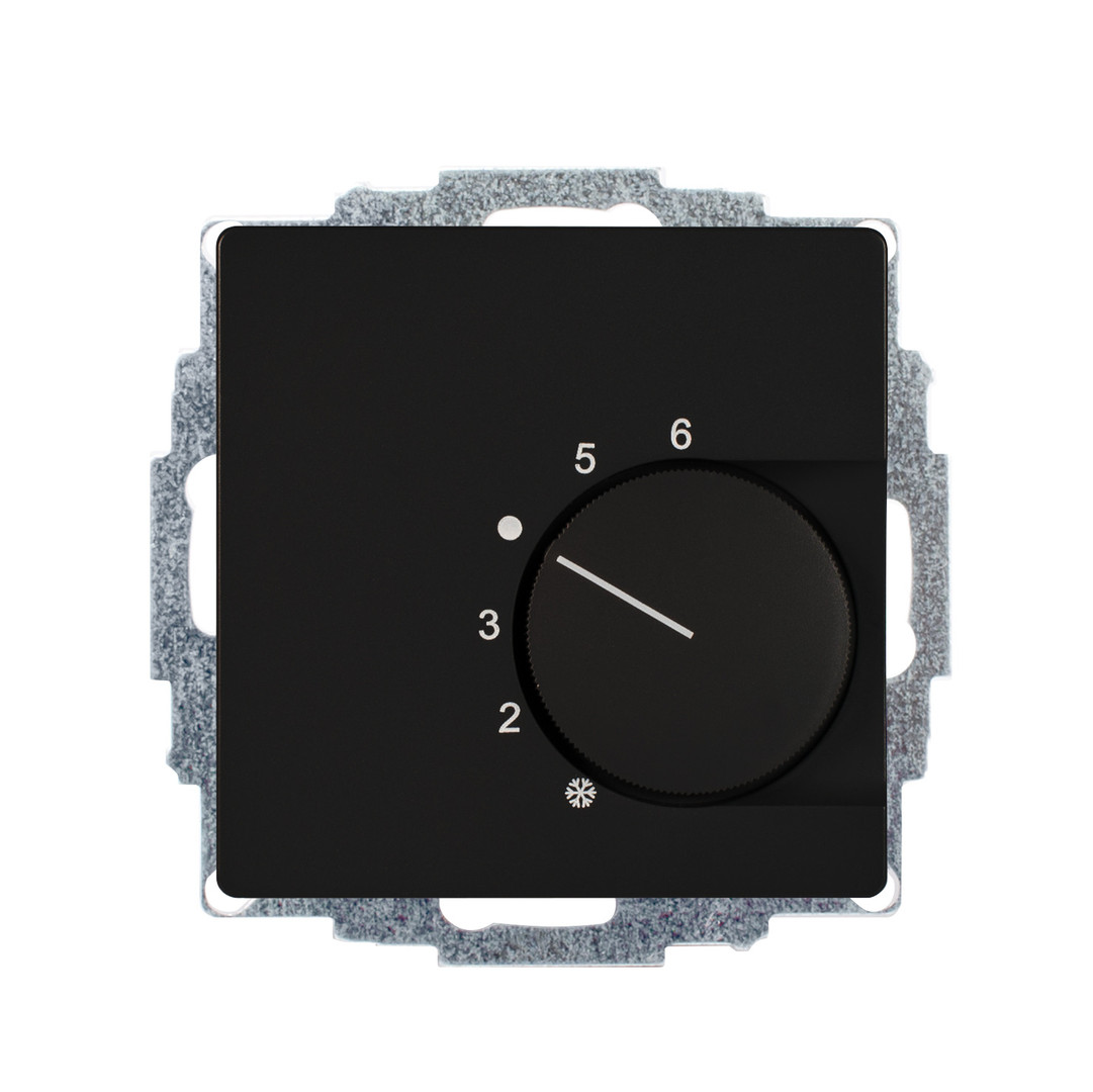 Raumtemperaturregler u.P., 230 V, einschl. Zentralscheibe, ohne Abdeckrahmen, für Stellantriebe stromlos offen und stromlos geschlossen, Triac-Ausgang für max. 5 Stellantriebe (3W elektromechanisch), mit TA-Eingang (3,5°C), Einstellbereich 5…30°C mit Bereichseinengung, mit Berührungsschutzkappe, Anschluss für 230V-Eingangssignal Heizen/Kühlen (Change Over) vom gleichen FI und LS, ohne LED , Farbe: tiefschwarz matt lackiert, passend in folgende Schalterprogramme: Berker Q.1, Q.3, Q.7. Maximale Leitungslänge für Heizen/Kühlen-Eingang: 100 m. Im Falle größerer Leitungslängen ist u.U. ein Entstör-Kondensator 0,33 Mikrofarad zwischen Steuerleitung Heizen/Kühlen und Neutralleiter erforderlich.