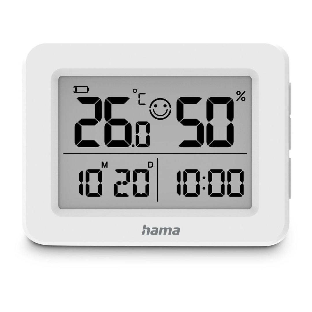 - Komfortanzeige zeigt den Zustand des Raumklimas in drei Symbolen: neutrales Gesicht, lachendes Gesicht und trauriges Gesicht