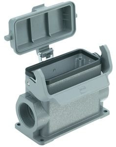 | Kurzbeschreibung | Sockelgehäuse, mit Kunststoffkappe, Baugröße: 16 B, hohe Bauform, Längsbügel, Polycarbonat (PC), Edelstahl, seitlicher Kabeleingang, 2x M32 |