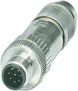 Kabelsteckverbinder, gerade, Stift, A-Kodierung, Schneidklemmanschluss, Polyamid (PA), Kontakte: 8, Messing Au über Ni steckseitig, Leiterquerschnitt: 0,14...0,34 mm², Bemessungsstrom: 2 A, Zink-Druckguss, Schraubverriegelung, Schutzart: IP65 / IP67 im gesteckten Zustand