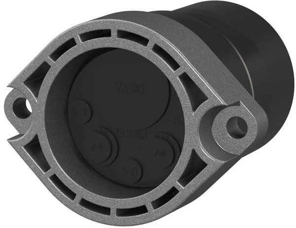 Ein- und Mehrspartenhauseinführungen für Kabel mit den folgenden Abmessungen: 1 Kabel Øa 26 - 30 mm, 3 Kabel Øa 5 - 8 mm, 2 Kabel Øa 7 - 13 mm. Der Werkstoff besteht aus glasfaserverstärktem Polyamid und EPDM.