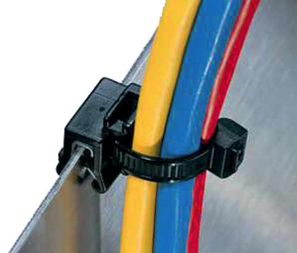 2-teiliger Kabelbinder mit EdgeClip, vormontiert. Der Kopf des Binders kann in optimale Bündelposition gebracht werden. Typ EC9, EC10, EC21 und EC22 für Bündeldurchmesser ab 1 mm. Für Kanten von 1-3 mm. Elemente aus der EdgeClip-Serie sind eine sehr gute Alternative überall dort, wo Lochbohrungen und Schweißbolzen nicht realisierbar und Kleber aufgrund höherer Temperaturen nicht einsetzbar sind. Anwendung findet die EdgeClip-Serie zur Bündelung und Befestigung von Kabelbäumen und Schläuchen überwiegend in der Automobil-, Bau- und Elektroindustrie sowie in der Kabelbaumfertigung.