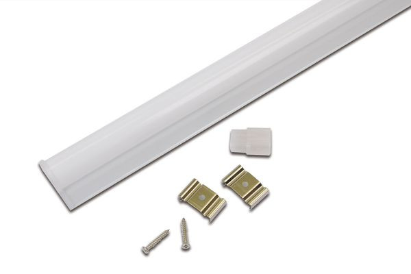 Sehr kompakte LED Leuchte für 230V, kleiner starrer Verbinder für minimale Leuchtenabstände, einfache Montage durch beiliegende Clipsbefestigung, Lichtfarbe neutral weiß ca. 4000K, optionales Zubehör wie waagerechte Anschluss- bzw. Verbindungsleitung