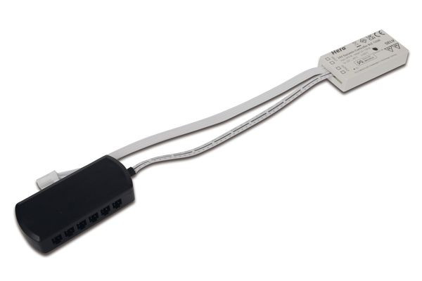 Bluetooth Low Energy-Controller zum Schalten und Steuern von 24V Dynamic Leuchten, Steckerfertig und optional, für jede Neuinstallation oder nachträgliche Erweiterung des bestehenden Systems, ansteuerbar über jedes iOS oder Android Smartphone oder Tablet (mit kostenloser App), mit Memory-Funktion (nach Netztrennung wird der Zustand wieder hergestellt), Anschlussleitung mit zwei LED 24-Steckern und 12-fach Verteiler für die Leuchten