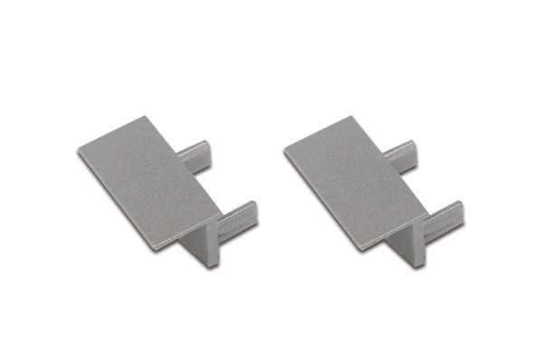 Stirndeckel LED Einfräsprofil, lackiert in alu-eloxiert, zur Abdeckung der Fräsradien an der 14mm breiten und 12mm tiefen Fräsnut, 2er Set