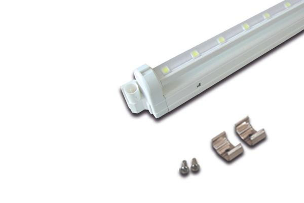 LED-Langfeldleuchte für 230V, drehbar um 180°, starrer Verbinder für minimale Leuchtenabstände, senkrechtes Stecksystem ermöglicht ein nachträgliches Entfernen aus dem Lichtband, stabiles Aluminiumgehäuse, einfache Montage durch beiliegende Clipbefestigung, umfangreiches Zubehör wie waagerechte oder senkrechte Anschluss- bzw. Verbindungsleitung Verteiler und Einbaubuchsen mit sehr kleinem (D= 7,5mm) Hochvolt-Stecksystem von Tyco AMP, Eck-Montageclipse 45° bzw. Winkel-Montageclipse 90°, Lichtfarbe Meat R für Fleischtheken