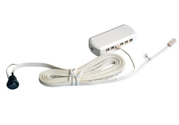 Einbau-Wippschalter, für 15mm Bohrung, bedruckt mit 0+I, Anschlussleitung 2,5m mit LED 24-Stecker, Schaltleitung 2,5m mit 11 fach-Verteiler LED24