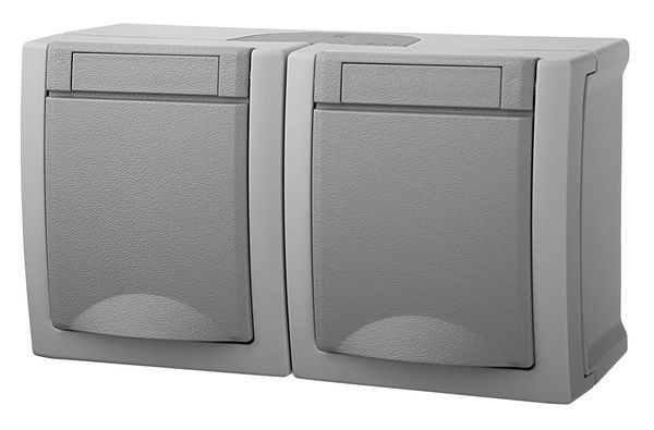 | Kurzbeschreibung | Steckdose 2-fach waager. Aufputz IP 54 grau |