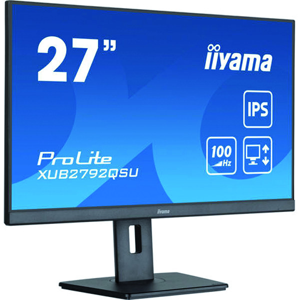 iiyama 27 '' (68.5 cm) Monitor mit WQHD-Auflösung, IPS-Panel-Technologie, 100Hz Bildwiederholrate und einem 150 mm höhenverstellbaren Standfuß [Energieklasse F] (XUB2792QSU-B6)