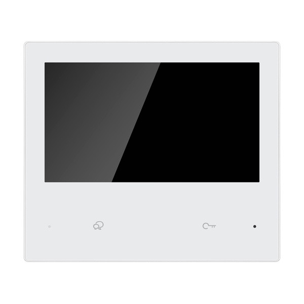 Video-Innenstation, mit 7 Zoll IPS-Touch-Bildschirm (sichtbare Bilddiagonale 17,6cm), Freisprechfunktion und 20 auswählbaren Klingeltönen. Aufnahme von 3-sekündigen Videos der Türsprechstellenkamera automatisch bei Anruf. Integrierter Ringspeicher für die letzten 50 Videoaufnahmen. Über den Bus kann je Türsprechstelle eine zusätzliche Kamera VT300K eingebunden werden und ggf. als Bild-in-Bild bei Anruf dargestellt werden (keine Aufnahme). Digitaler 2-Draht-Bus-Anschluss. Inkl. Anschlusskabel für Etagenruftaster sowie für Zusatzsummer (12V DC, max. 50mA) oder Funk-Klingelerweiterung. Interner Anruf zu allen Innenstationen im System möglich. Bildschirmauflösung: 1024 x 600 Pixel. Pro Ruftaste können max. eine Innenstation als Hauptinnenstation (normalerweise VT300MW oder VT300MW10 wenn Rufweiterleitung erwünscht ist) und drei als Nebeninnenstationen (normalerweise VT300MB, VT300LD oder VT300L) betrieben werden. Spannungsversorgung: 28V DC, max. 4W aus Systemnetzgerät. Farbe: weiß. Lieferung inkl. Wandhalterung (für waagerechte Befestigung auf Schalterdose geeignet). Gehäuseabmessungen: 185 x 160 x 18mm. Passendes Zubehör: Tischhalterung VT300SM2, Zusatzgong FD21.