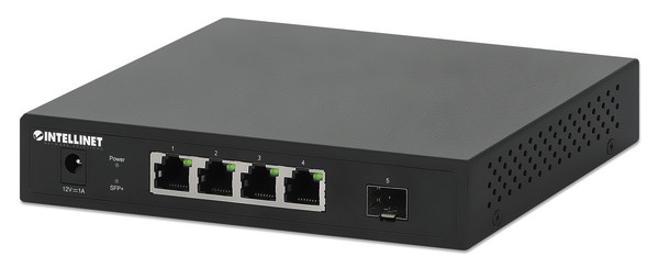 Vier ultraschnelle 2.5GBASE-T RJ45 Ethernet-Ports, IEEE 802.3bz-konform 10/100/1000/2500 Mbit/s Auto-Sensing Ports erkennen automatisch die optimale Netzwerkgeschwindigkeit Ein GBIC-Modul-Steckplatz (SFP/SFP+) für 10G-Uplink-Fähigkeit 40 Gbit/s Switching-Kapazität Abwärtskompatibel zu 10/100/1000 Mbit/s-Geräten Auto-MDI-X und NWay Auto-Negotiation auf allen RJ45-Ports Unterstützt Jumboframes bis zu 12 KByte Store-and-Forward-Architektur Unterstützt 802.3x Flow Control für Voll-Duplex und Backpressure für Halb-Duplex Unterstützt 4.000 MAC-Adressen mit Auto-Learning und Auto-Aging 8.1 Mbits Zwischenspeicher Kompaktes Desktop-Format mit robustem Metallgehäuse LEDs für Strom und Link/Aktivität Lüfterfreie Konstruktion für leisen Betrieb Desktop-Metallgehäuse Integrierte Wandmontagelöcher sowie vier Gummifüße für Desktop-Anwendungen Vollständig NDAA-konform 3 Jahre Garantie