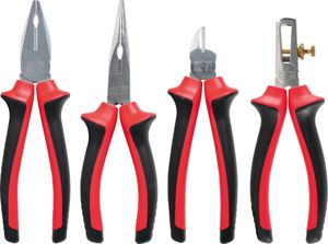 bestehend aus: 1 VDE - 2komp. Kombizange 180 mm, 1 VDE - 2komp. Flachrundzange 200 mm, 1 VDE - 2komp. Seitenschneider 160 mm, 1 VDE - 2komp. Abisolierzange 160 mm