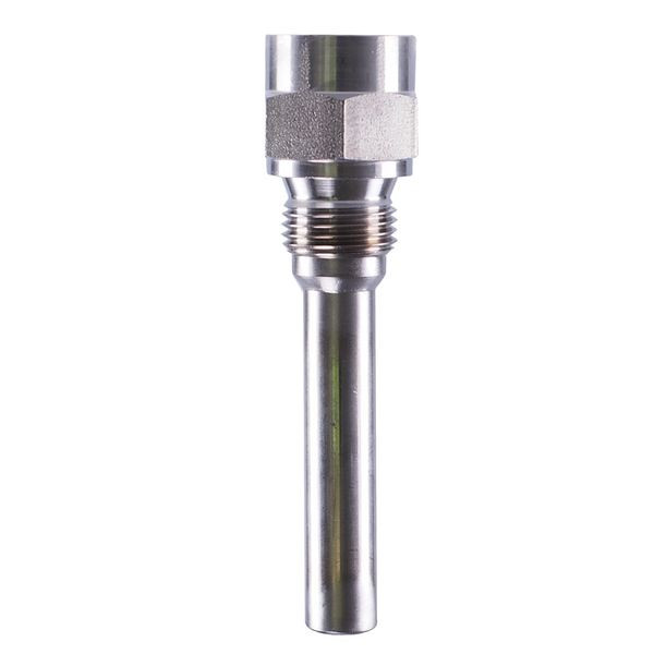 Die zylindrische Einschraub-Schutzhülse wird für den Einbau von Thermoelementen und Widerstandsthermometern verwendet, wenn beispielsweise ein Fühleraustausch ohne Systementleerung und/oder Druckbeständigkeit gefordert ist. Die Schutzhülse mit Innengewinde G 1/2 (DIN 16179 Form D) ist für Temperaturen von 0 bis 400 °C ausgelegt. Der Schutzrohr-Außendurchmesser beträgt 13 mm. Als Prozessanschluss dient eine Verschraubung G 1/2. Innendurchmesser und Einbaulänge betragen 11 x 100 mm. Die angegebenen Maße beziehen sich auf die Thermometer. Als Schutzhülsenwerkstoff kommt Edelstahl 1.4571 zum Einsatz.