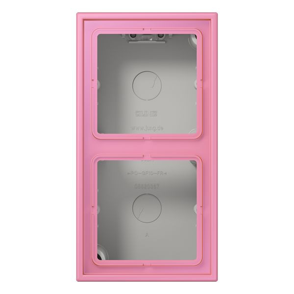 | Kurzbeschreibung | Aufputz-Kappe 2fach, LS CUBE, Duroplast lackiert, rose vif (4320C), senkrechte und waagerechte Montage |