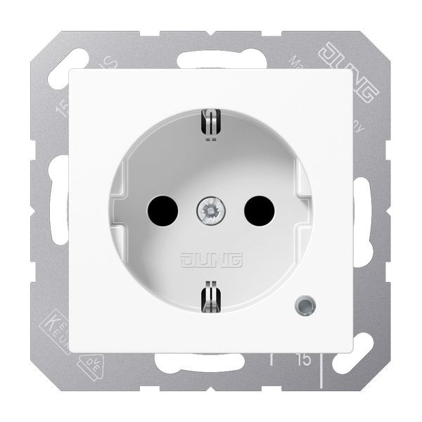 | Kurzbeschreibung | SCHUKO®-Steckdose, ohne Krallen, mit Funktionsanzeige, SAFETY+, mit nicht geerdetem Tragring, Duroplast antimikrobiell, Serie AS, alpinweiß |
