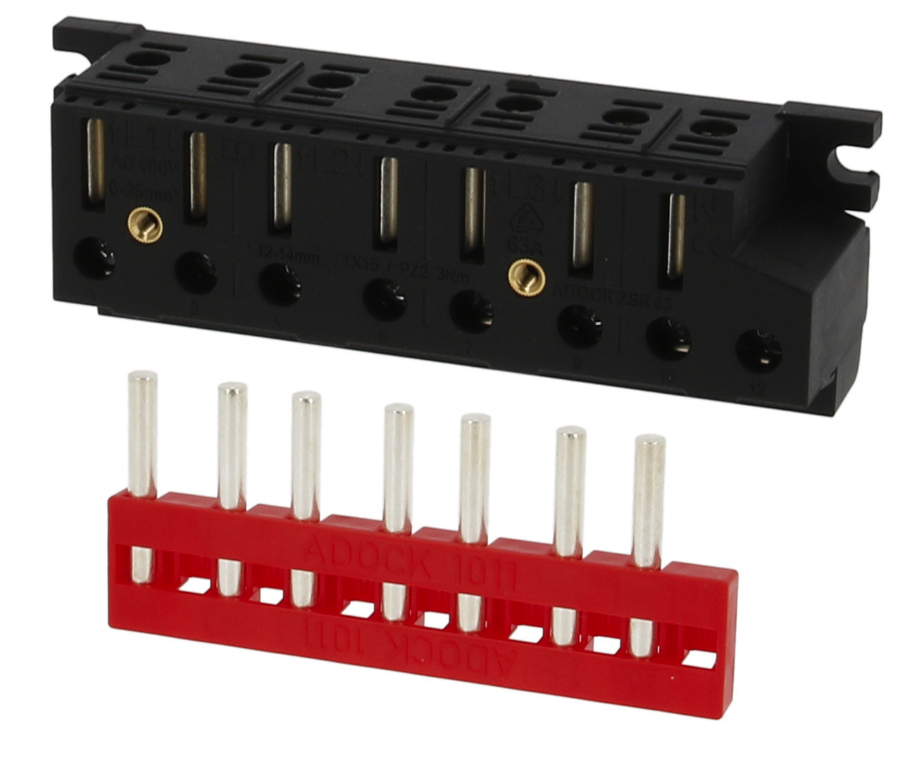ADOCK Zählersteckklemme 63A im Set mit Systemstiften im Magazin