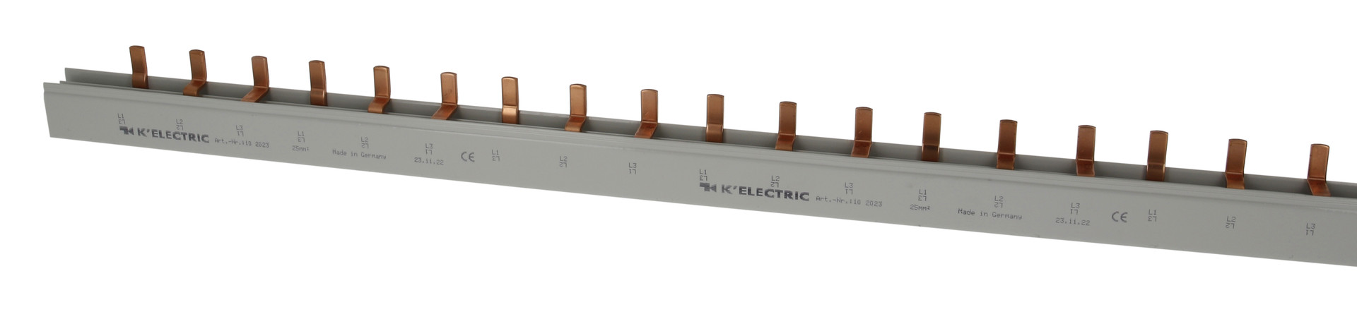 | Kurzbeschreibung | Steg-Verdrahtungsschiene, 3-polig, 25mm², 36TE, 27mm, zzgl. Metallzuschläge |
