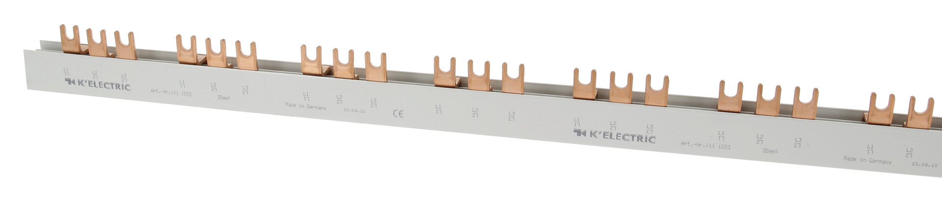 | Kurzbeschreibung | Gabel-Verdrahtungsschiene, 3-polig+17,8mm, 35mm², 42TE, zzgl. Metallzuschläge |