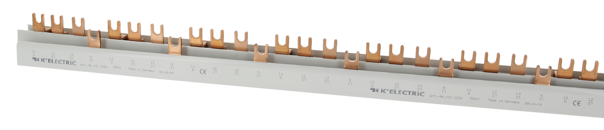 | Kurzbeschreibung | Gabel-Verdrahtungsschiene, 4-polig, 35mm², 56TE, zzgl. Metallzuschläge |