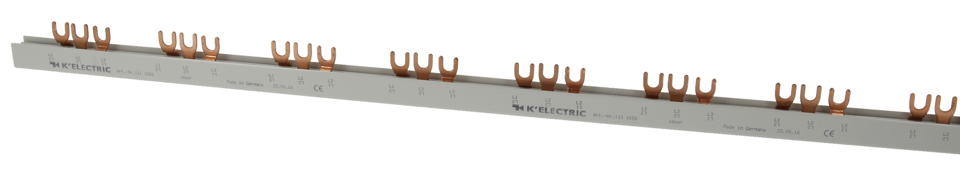 | Kurzbeschreibung | Gabel-Verdrahtungsschiene, 3-polig+17,8mm, 16mm², 42TE, zzgl. Metallzuschläge |