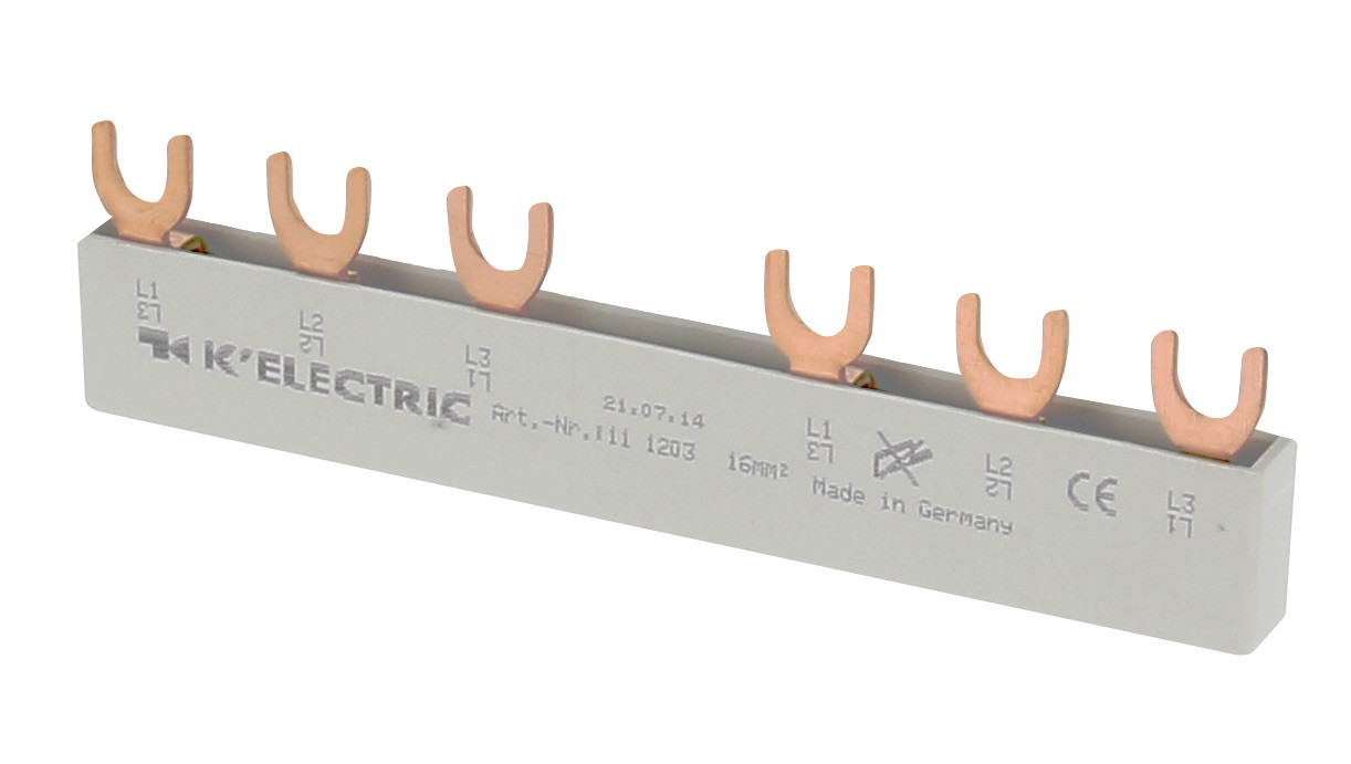 | Kurzbeschreibung | Gabel-Verdrahtungsschiene, 3-polig+17,8mm, 16mm², 6TE (2x3-pol), zzgl. Metallzuschläge |