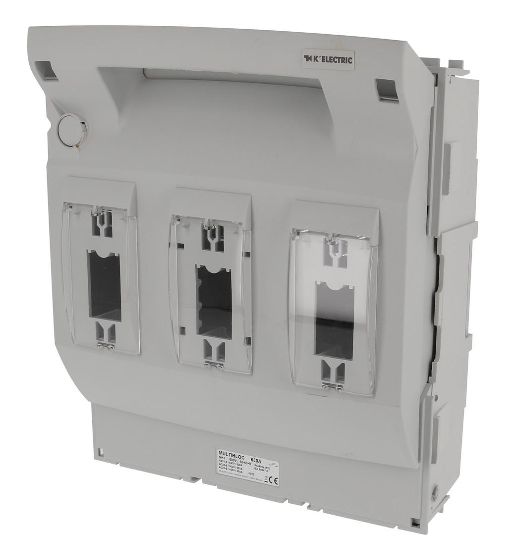 | Kurzbeschreibung | NH 3 Aufbau-Lasttrennschalter Multibloc 630A, 3polig, Anschlussschrauben M12 |