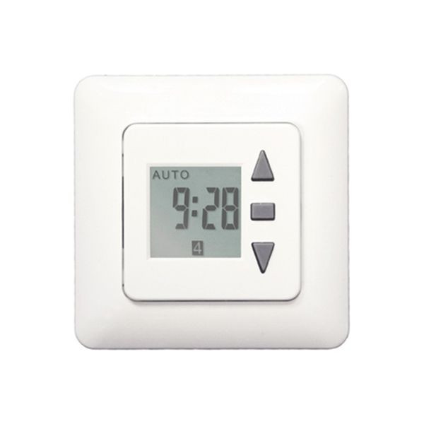 Die Rollladenzeitschaltuhr Tastor Konsum SD-Astro kombiniert eine hohe Funktionalität mit Komfort und einem sehr guten Preis-/ Leistungs-Verhältnis. Er bietet ein Tages-, Wochen- und Astroprogramm sowie eine Zufallsfunktion. Für das Astroprogramm kann eine Korrekturzeit von +/- 2 Stunden eingestellt werden. Es lässt sicht zudem ein Sonnen- und Dämmerungssensor anschließen, mit dem die Zeitschaltuhr auch automatisch sonnenstandsabhängig schalten kann. Die Bedienung und Einstellung erfolgt über die 3 Tasten auf der Vorderseite. Beides ist sehr intuitiv und leicht zu erlernen. Das LCD-Display ist klar strukturiert und somit gut abzulesen. Optisch hält sich der Tastor Konsum sehr zurück und passt so gut in die meisten Umgebungen. Die standardisierte Bedienfläche (50x50) kann mit den entsprechenden Zwischenrahmen in fast alle gängigen Schalterprogramme integriert werden. Der Klemmblock für den Netz- bzw. Motoranschluss ist steckbar und kann so ganz einfach angeschlossen und im Nachgang eingesteckt werden. Bei der Lieferung liegt dem Gerät ein Standardrahmen in reinweiß bei. Farbe der Bedienfläche: reinweiß