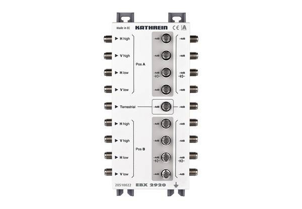 5-862 u. 4 x 950-2150 MHz; 5 x 2fach-Verteiler in einem Gehäuse; F-Anschlüsse; kaskadierbar mit EXR 2500er-Multischalter-System