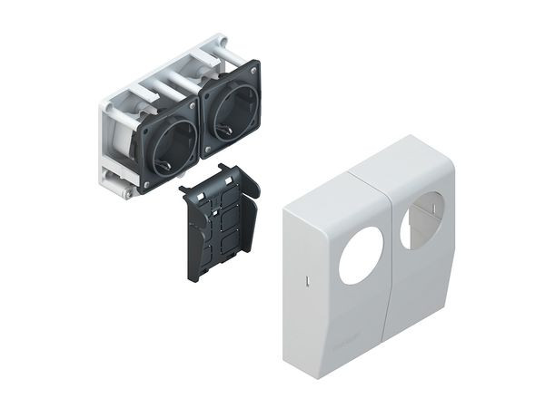 CENTRIC-Doppelschutzkontaktsteckdose, einschließlich 2 Steckdoseneinsätze, zweifach, Tank seitlich offen, anschlussfertig vorverdrahtet, mit Stromartentrennung 5090. Der Anschluss erfolgt über schraubenlose Verbindungsklemmen. Auf Anfrage auch mit Berührungsschutz lieferbar. für Sockelleistenkanalsystem : SDK70 T/SDK70 Abmessungen (ca. Maße) H x B x T : 143 x 120 x 42,5 mm Werkstoff : ASA (Acrylsäureester-Styrol-Acrylnitril-Pfropfcopolymer) Farbton Steckdoseneinsatz : tiefschwarz RAL : 9005 (ähnlich) Farbton Gerätetank : cremeweiß RAL : 9001 (ähnlich)