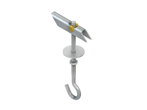 Kippdübel, mit Deckenhaken, inkl. 2 U-Scheiben nach DIN EN ISO 7089 und 2 Sechskantmuttern nach DIN EN ISO 4035, für den Einsatz an Hohlraumdecken und -wänden. Gewinde : M 6 Gewindelänge : 90 mm Gesamtlänge : 130 mm Bohrloch-Ø : 17 mm Erforderliche Hohlraumtiefe : 70 mm max. Plattendicke : 40 mm Tragfähigkeit zul. F : 0,2 kN (die Tragfähigkeitsangaben beinhalten eine 5-fache Sicherheit und gelten nur bei ausreichender Tragfähigkeit des Untergrundes) Werkstoff : Stahl, galvanisch verzinkt Werkstoff Achse : Messing