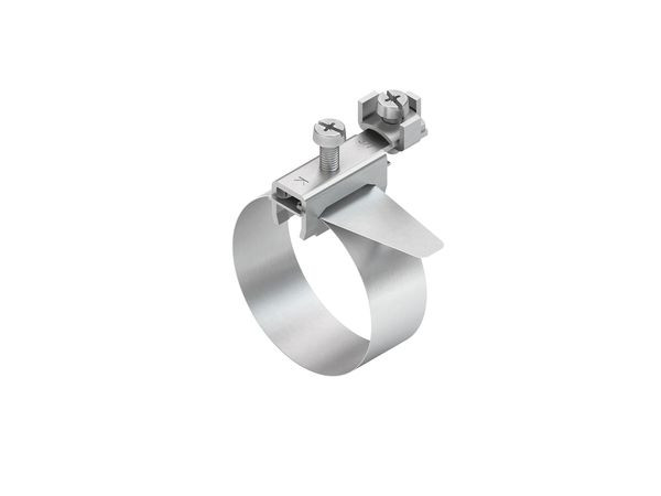 | Kurzbeschreibung | Erdungs-Bandschelle, längs/ quer,Bandlänge 582mm, f. Rohr-Ø 17,5-165mm, Messing, vernickelt |